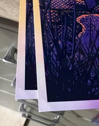 THESE ARE NOT SCREEN PRINTED ON FOIL. It looks like they are in the photo, but they are not. They have a rainbow colored background to the art, but these were printed on regular 100lb card stock paper. They look really, really cool, and I am really happy with how these turned out!